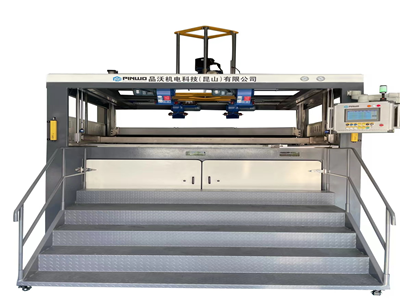 PW single-chip forming machine is a 2000mm*1500mm single-station thermoforming machine, equipped with a freely adjustable wellhead plate (maximum 2000mm*1500mm, minimum 1000mm*650mm), upper electric furnace halogen and lower electric furnace halogen heaters that can quickly move up and down the plate independently Square heating. Other features include OMRON PLC control, adjustable pressure rack, 189 independent oven zones (99 zone ovens on the upper oven), infrared pyrometer on the upper oven, safety/anti-sag tabs on the lower oven, air and vacuum valves, Multiple oversized vacuum tanks, high-speed cooling fans and air conditioning electrical enclosures